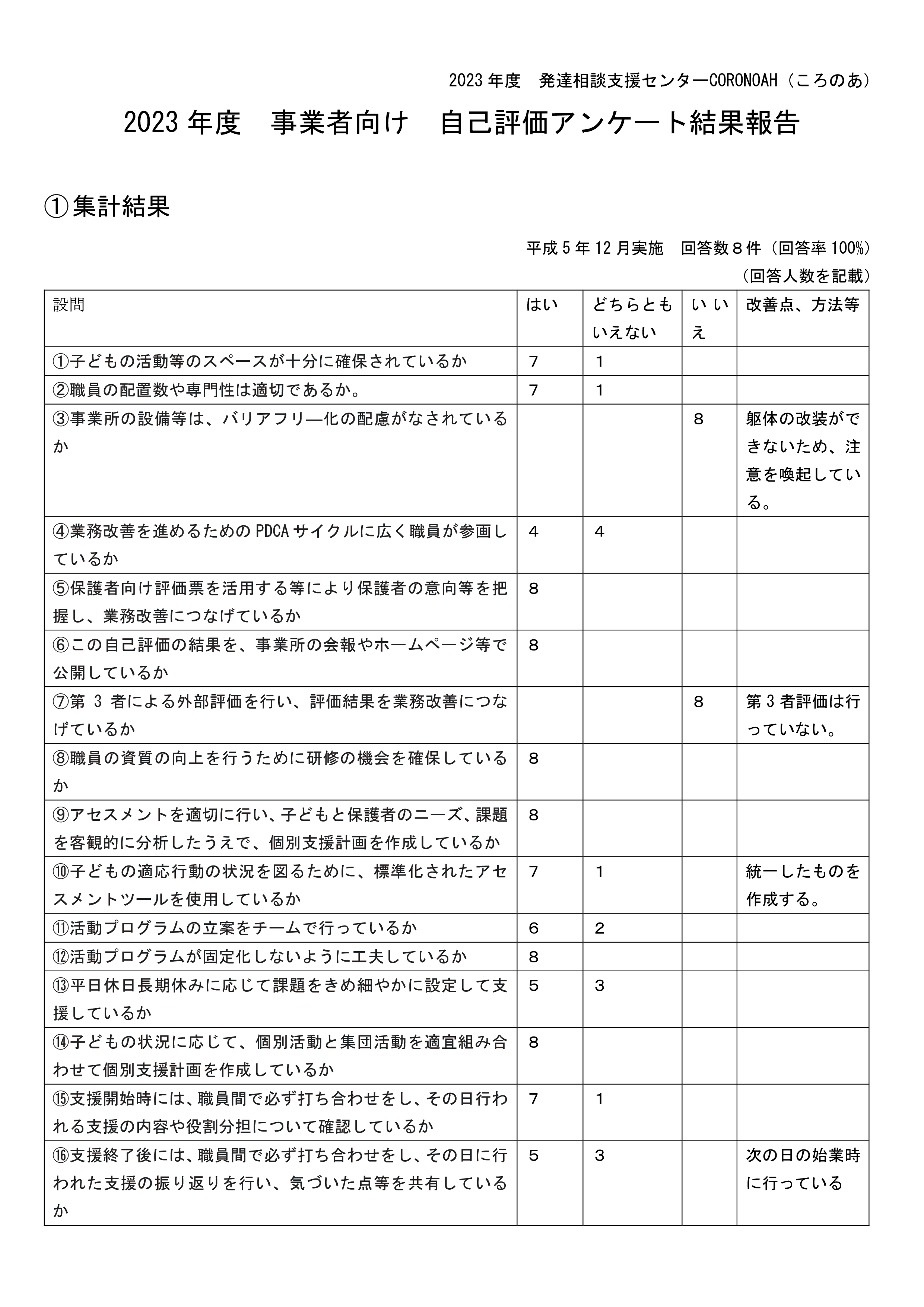 2023年度 事業者向け 自己評価アンケート結果報告